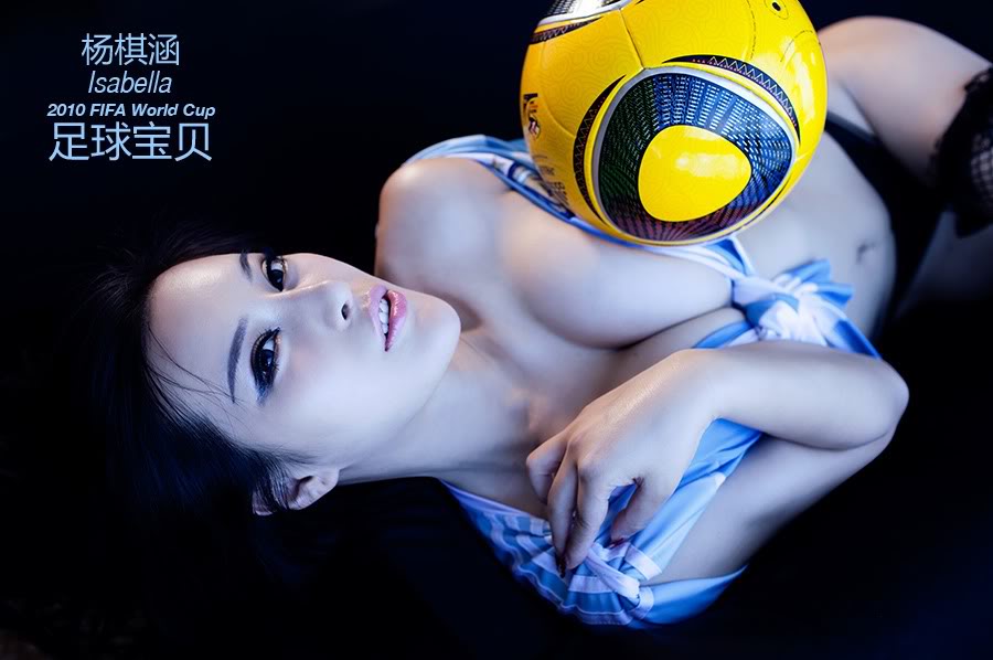 世界盃進行得如火如荼,這邊廂足球寶貝也越來越 hot,誓要刺激球迷的腎上腺素。有「小范冰冰」之稱、現年 19歲的內地足球寶貝楊棋涵,日前穿上改裝阿根廷波衫拍攝性感寫真,為愛隊打氣。